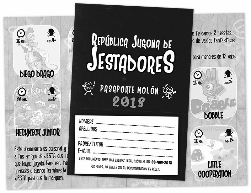 Para quien no lo conozca, el pasaporte de JESTA es una manera de presentar las novedades que las editoriales invitadas a colaborar en las jornadas quieran dar a conocer a todos aquellos que queráis acercaros a las JESTA, para que probéis los juegos totalmente gratis y podáis incluso llevaros algún premio.